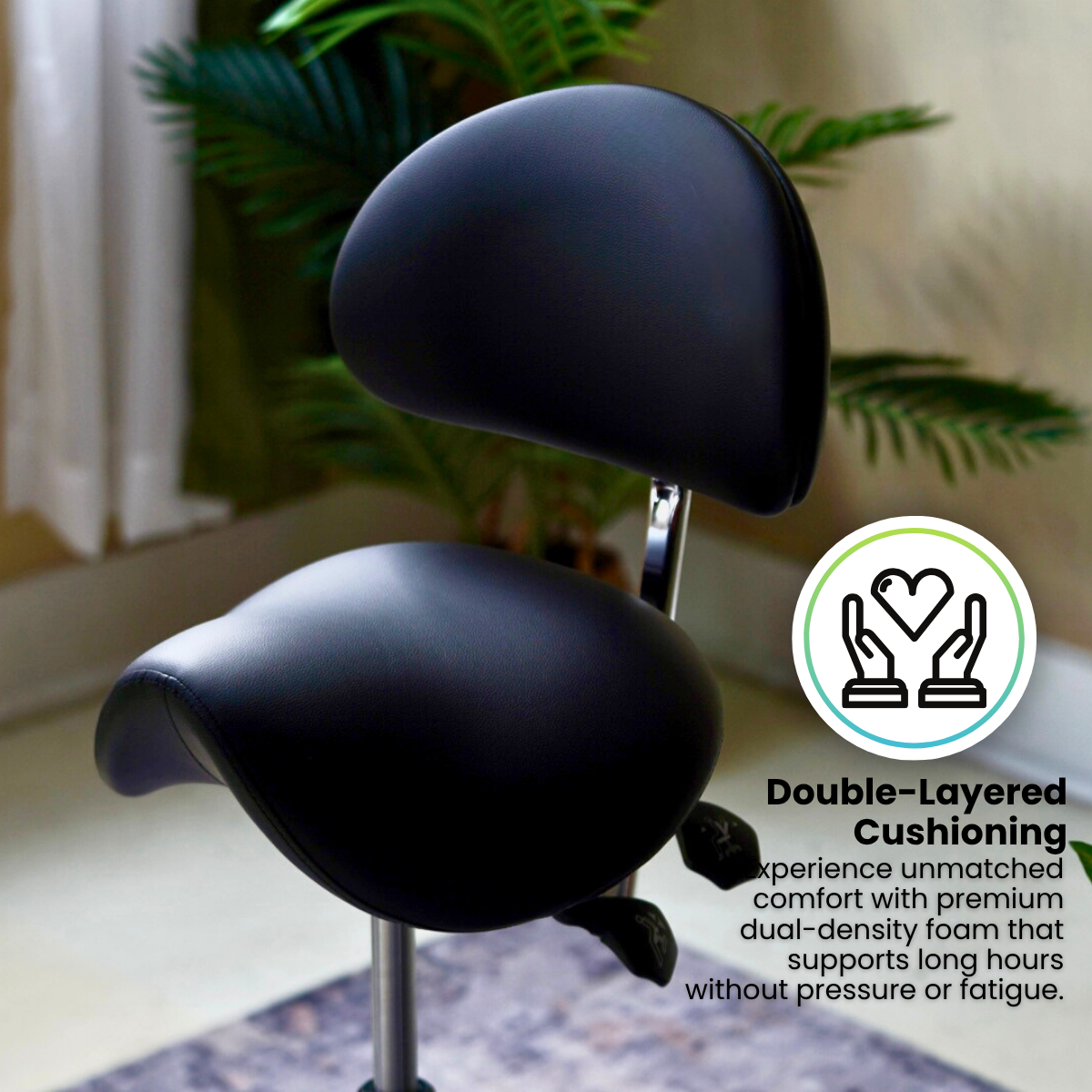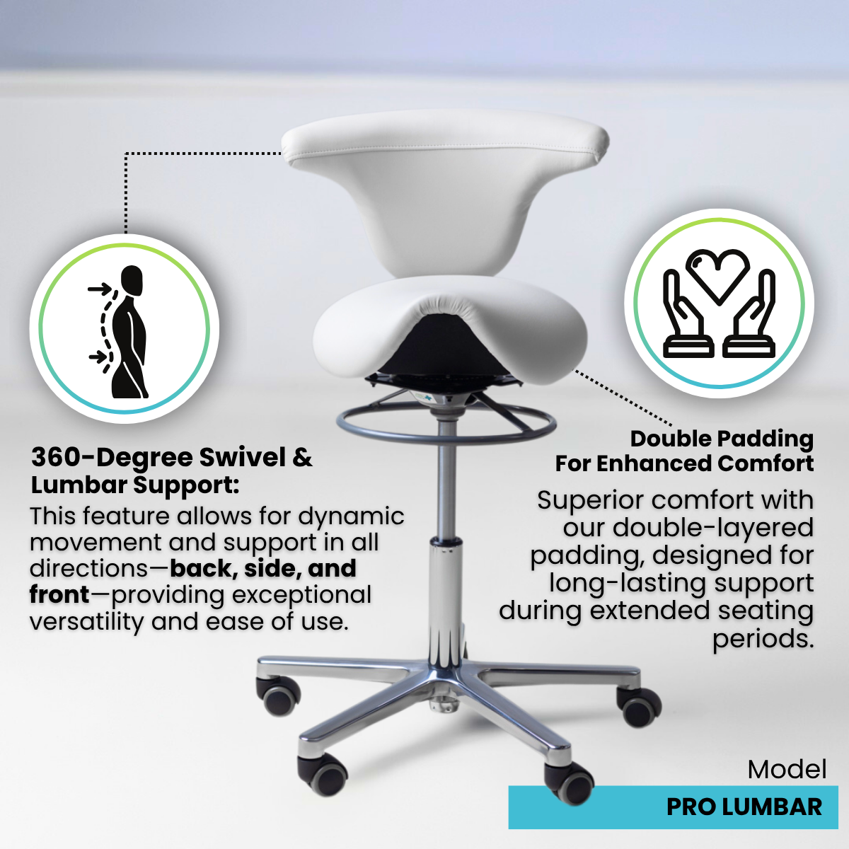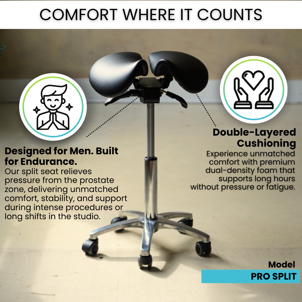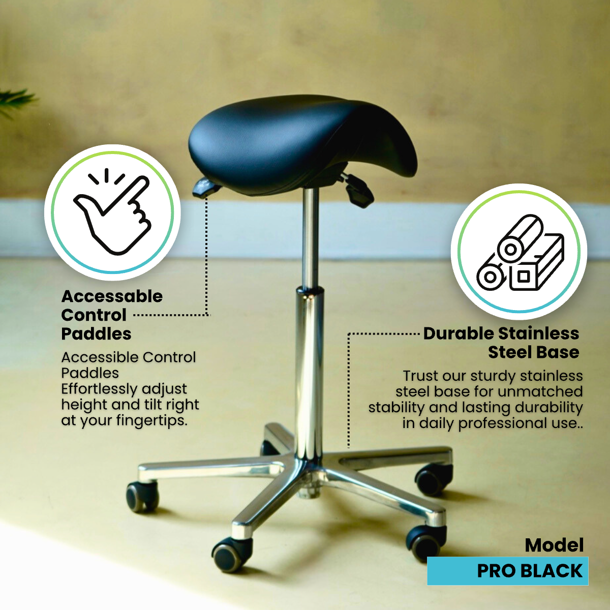 Our saddle stool keeps your spine aligned during long procedures, reduces neck and back strain, and helps you stay sharp and comfortable through every shift.
