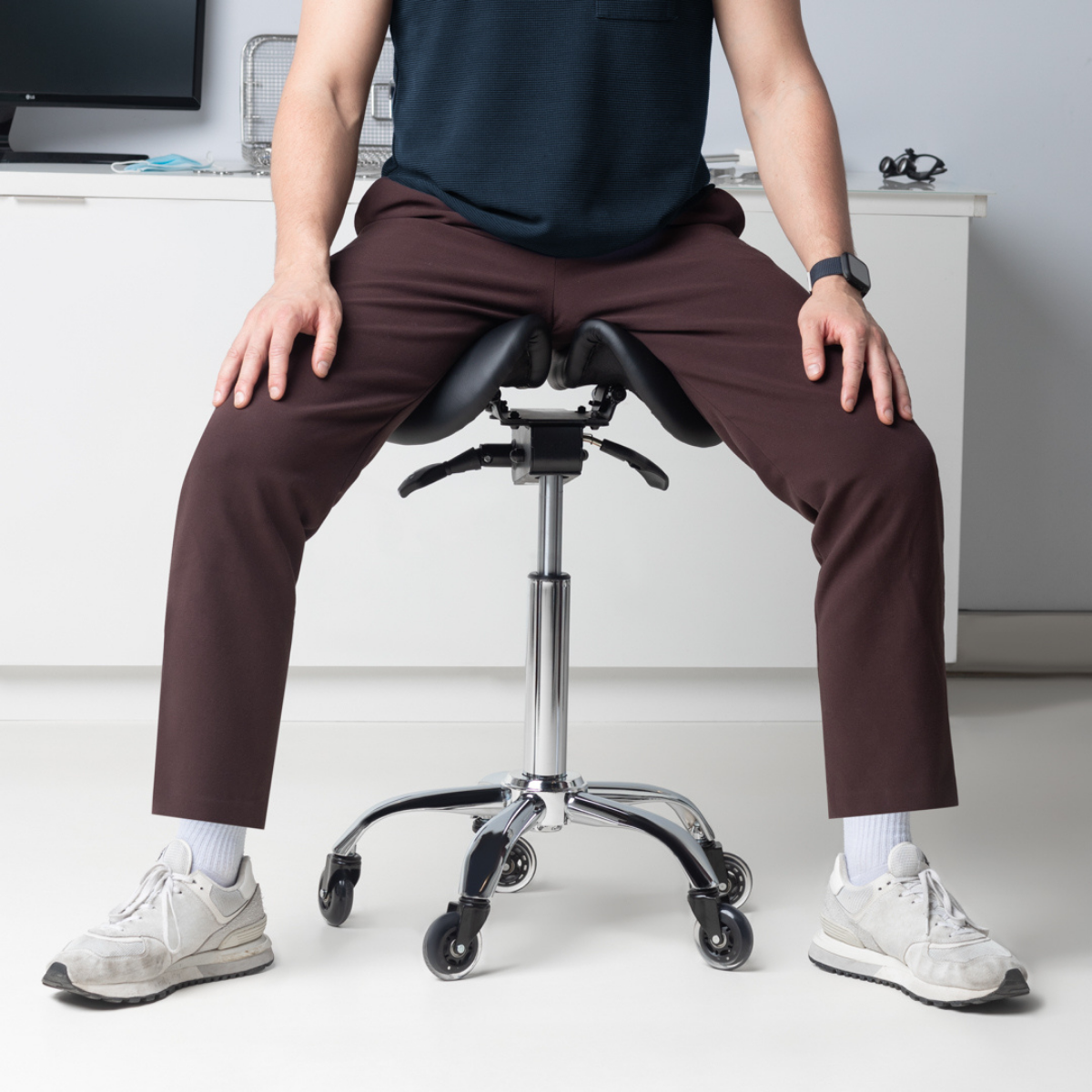 "Saddle seating supports the body’s natural spinal curvature and open hip angle, reducing compression on lumbar discs and activating postural muscles that traditional chairs shut off.”