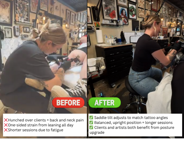 With tilt control and an open hip angle, you stay balanced and aligned for hours — leading to longer sessions, less body fatigue, and better work for every client.