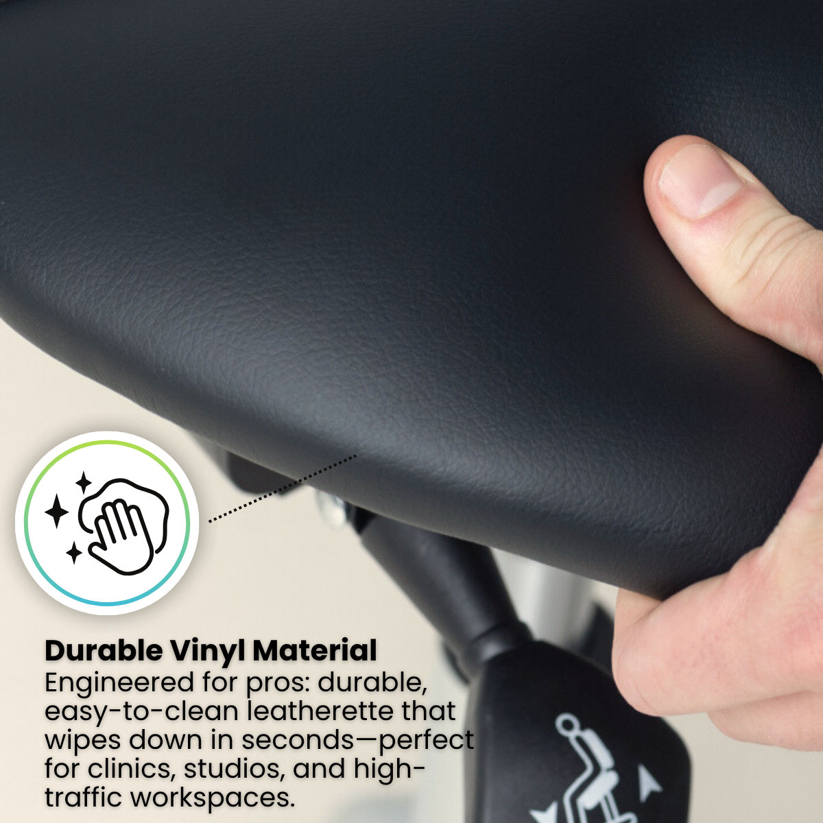 With tilt control and an open hip angle, you stay balanced and aligned for hours — leading to longer sessions, less body fatigue, and better work for every client.